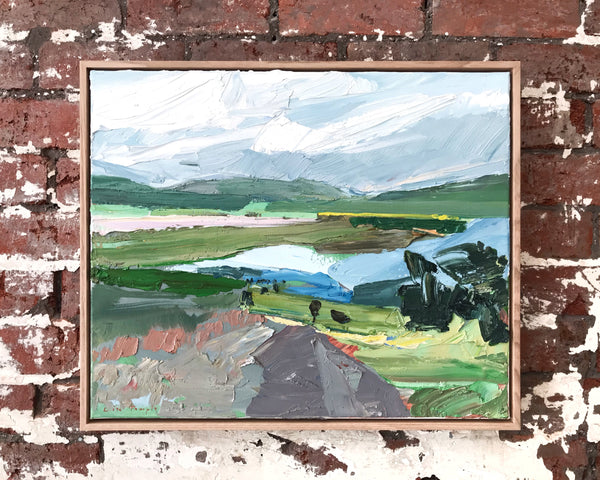 Lise’s carefully packaged paintings arrived at the gallery earlier this month. Unboxing them felt exciting, like unwrapping a gift on your birthday. The quality of the thick oil paint she uses is even more lustrous in real life. Lise's paintings are simultaneously dynamic and subtle, just one confident stroke of paint can capture the delineation of a mountain and a few delicate marks allude to the existence of a canola field or distant wattle trees. The tension between her more representational details and abstract pains of colour draws us in and keeps us engaged. We can't stop looking at these beautiful paintings.