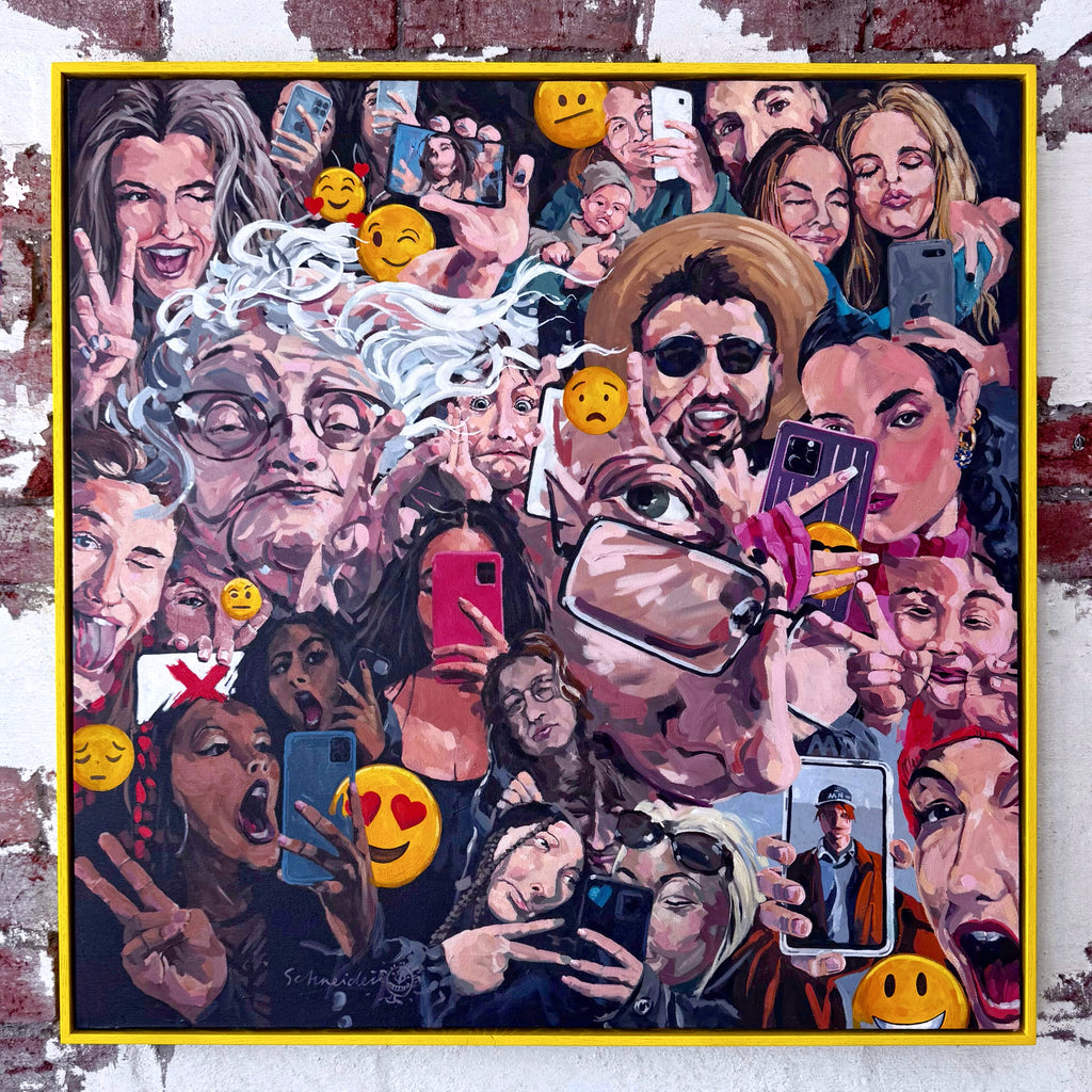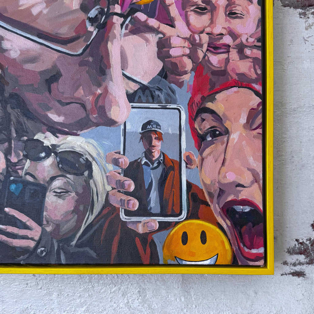 Framed in bespoke hand painted yellow oak frame