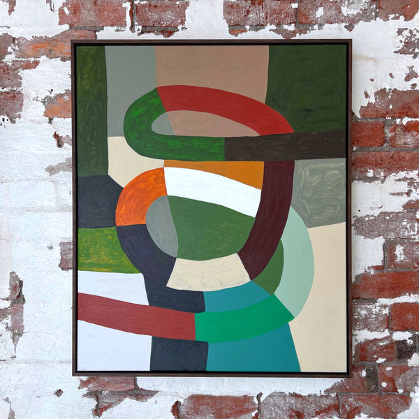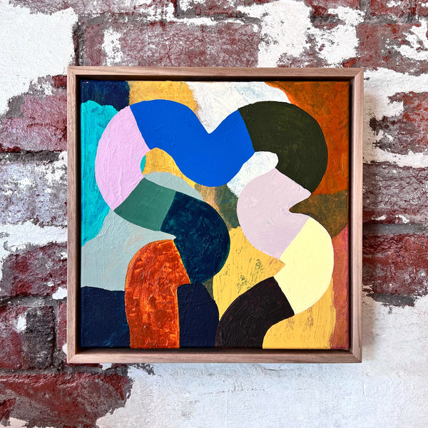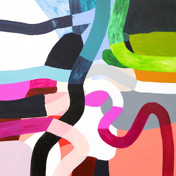 Melanie's bright and bold abstract works exude joy through their exploration of movement and the combination of colours and textures. She loves the challenge of making relationships work within a piece, often reworking layers and viscosity to bring rhythm and harmony to the colours used.