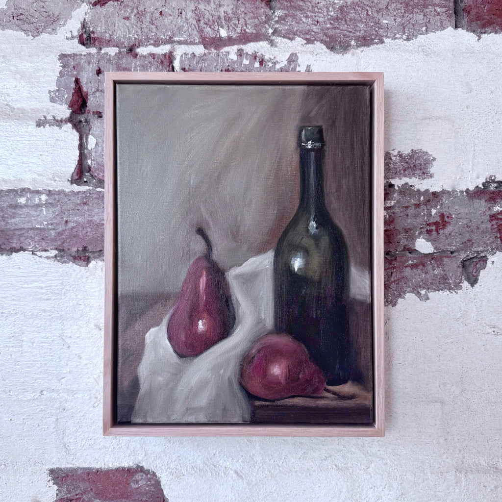 Jessica Olpp - NATURE MORTE AUX POIRES ET À LA BOUTEILLE